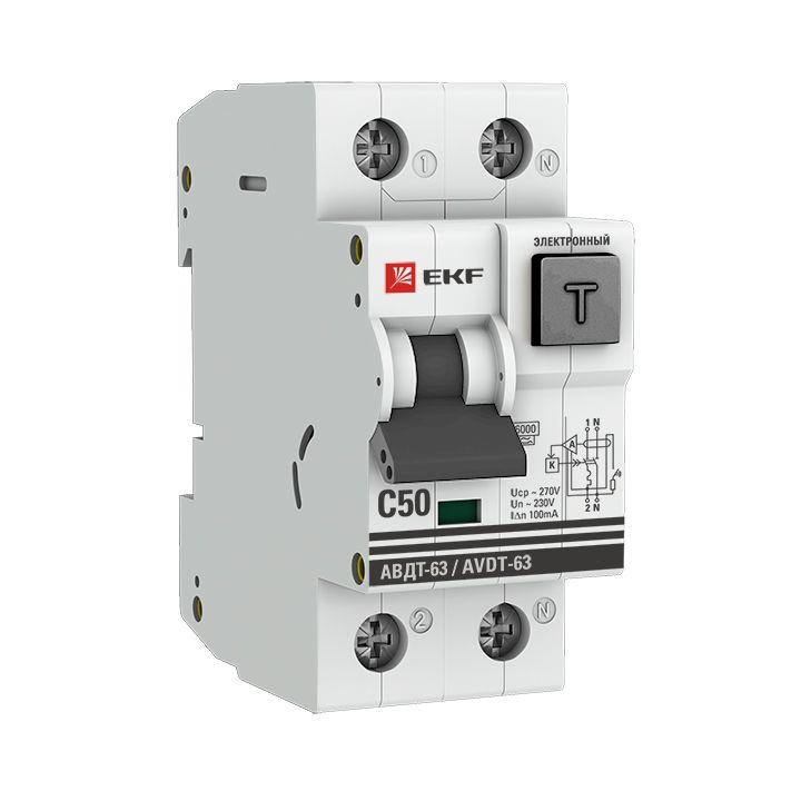 Дифференциальный автомат 2п C 63А 100мА тип A 6кА АВДТ-63 2мод. электрон. PROxima EKF DA63-63-100e
